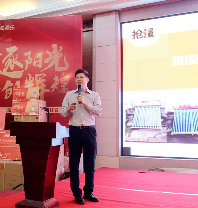 市場部部長國升進行了《以舊換新選桑樂》啟動宣講,桑樂集團“紅五月”以舊換新正式啟航。桑樂作為全國知名太陽能品牌、山東省名牌,品牌知名度美譽度高,家喻戶曉,更有知名央視主持人倪萍傾情代言,值此桑樂太陽能30年發展之際,產品配合中國風的產品設計,今年新推出的倪萍推薦款、狗年定制版的新款熱水器,贏得了市場好評。2018年集團布局全國戰略,穩扎穩打,集中突破,將“以舊換新”進行到底。太陽能以舊換新,就選30年的桑樂! 選30年的大品牌,用30年的好產品,交30年的好朋友!
