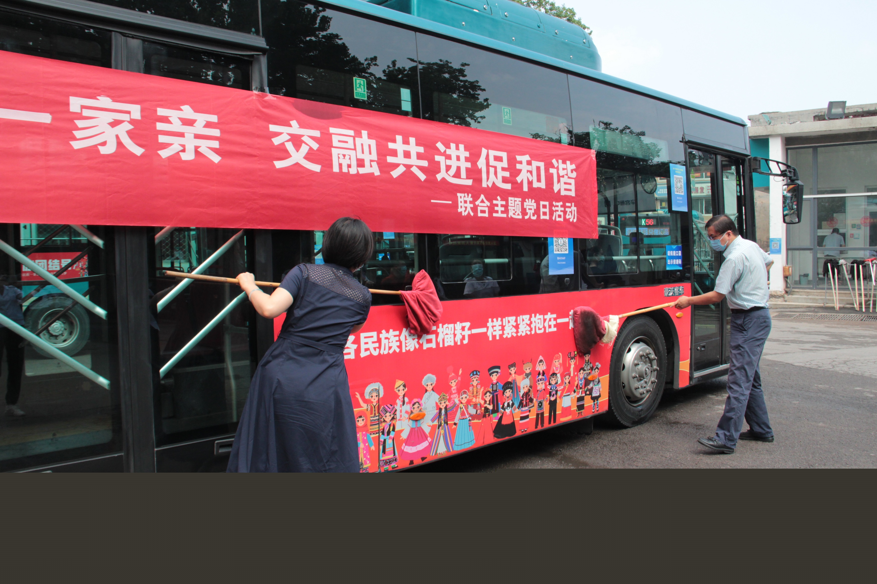為進(jìn)一步開(kāi)展民族團(tuán)結(jié)進(jìn)步宣傳活動(dòng),黨員代表們一同在車(chē)輛始發(fā)站點(diǎn)為乘車(chē)市民贈(zèng)送“民族團(tuán)結(jié)一家親 同心共筑中國(guó)夢(mèng)”宣傳品,將鑄牢中華民族共同體意識(shí)和民族團(tuán)結(jié)進(jìn)步理念融入群眾日常生活中。